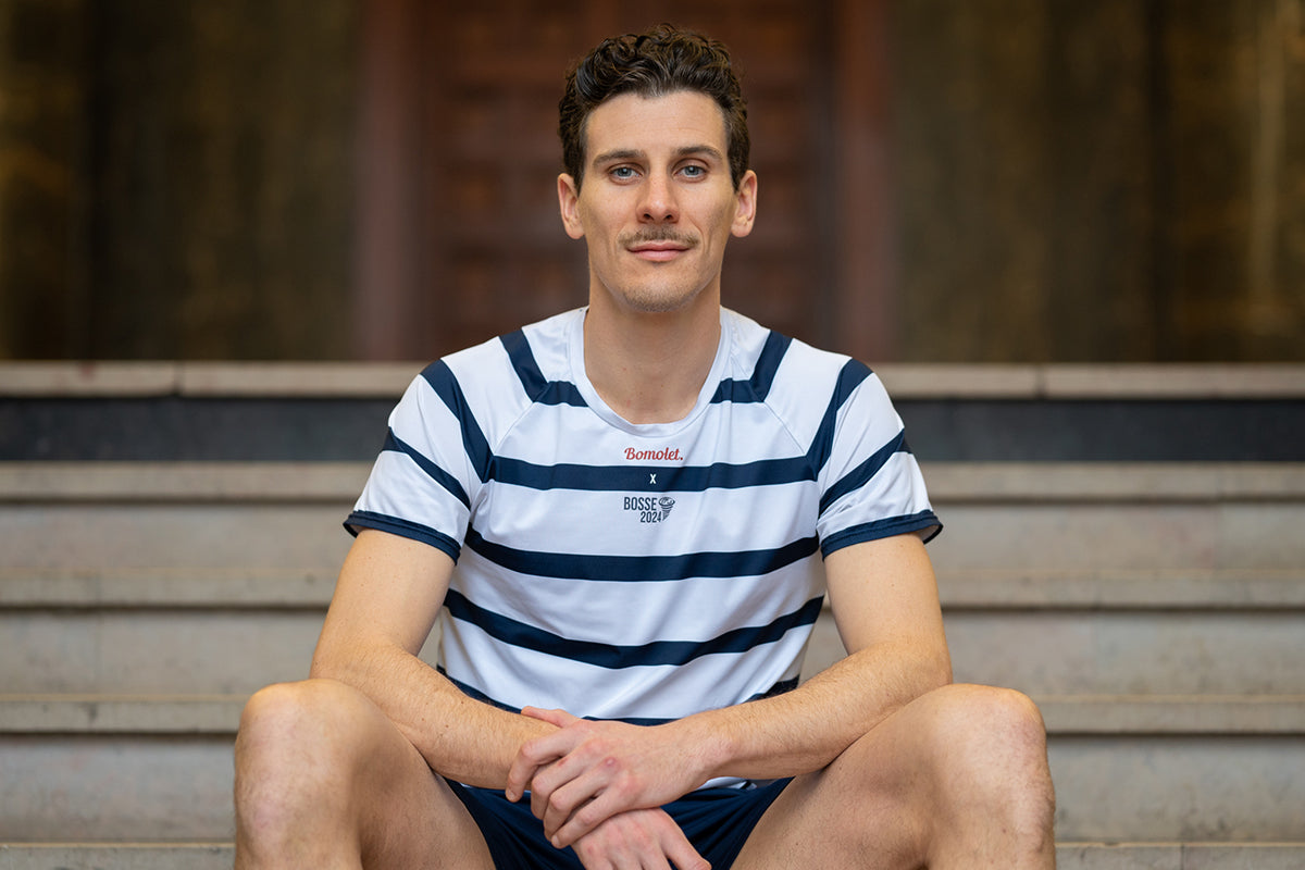 Ce t-shirt est le fruit d'une co-création inédite entre Bomolet et Pierre-Ambroise Bosse - Champion du monde sur 800m.